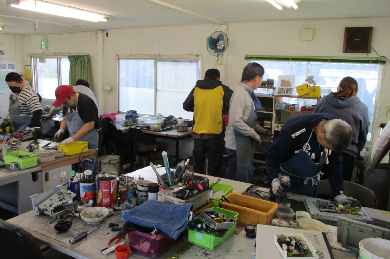 不要になったパソコンを分解し、部品ごとに分別する作業を行います。一つひとつ手作業で行うこの仕事は、集中力が活かされ、達成感が得られる作業です。ハードディスクの破壊基板・金属の分別ネジ・プラスチックパーツの仕分けなど回収された資源はリサイクル業者へ渡り、再利用されます。